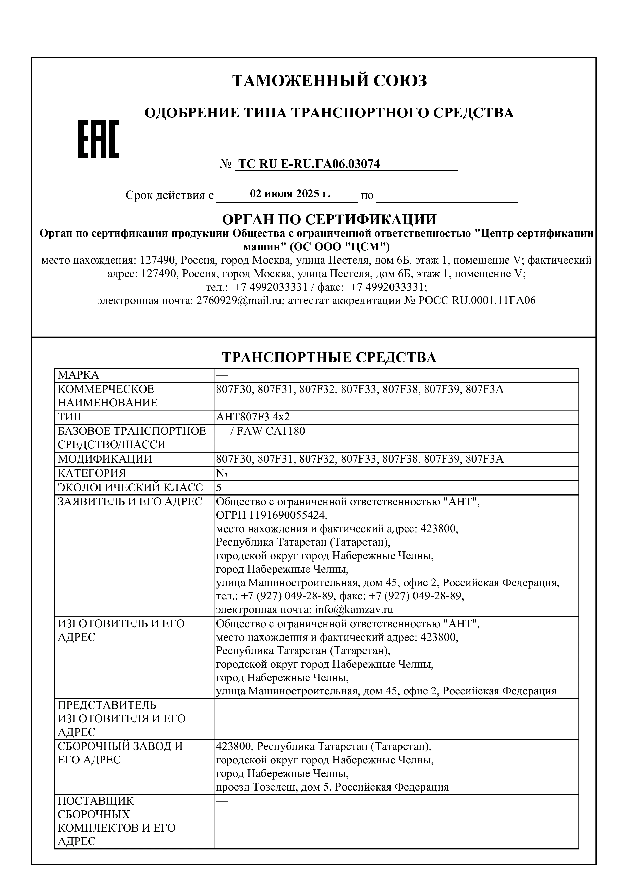 | Производитель шасси | КАМАЗ |